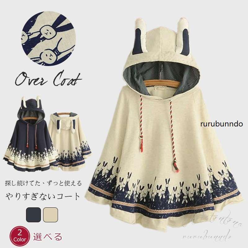 全国一律送料無料 ケープコート マントコート 兎アウター 上着 ポンチョ 中綿コートうさぎ可愛い秋 森ガール 冬大きいサイズ レディース